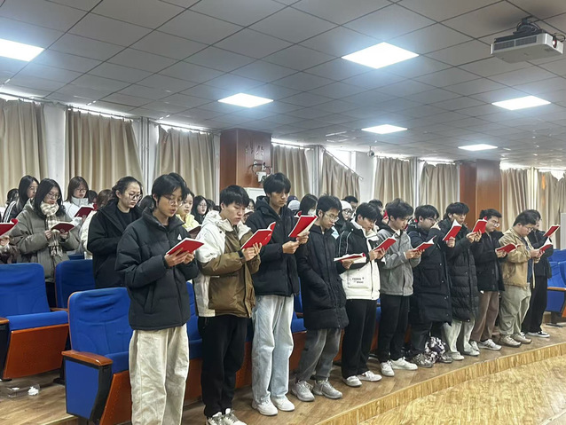 12月4日,肉漫屋于政法楼模拟法庭组织开展了全国教育系统“宪法晨读”活动,各年级学生代表齐聚一堂,以庄重仪式践行宪法学习,传递法治信仰。全体学生手持宪法文本,随主会场领读声整齐诵读宪法核心条款,清朗的诵读声中,宪法的庄严性与青年的认同感在专业空间里交融共振。晨读环节后,学院学生以“宪法:国家与公民的共同契约”为主题展开研讨,并围绕“宪法如何影响我们的学习与生活”交流感想,让宪法学习从“文本诵读”延伸至“生活感知”。