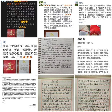 一封薄薄的喜报,传递浓浓的深情。学院通过喜报的形式同家长分享学生成长过程中的收获,有效丰富了家校协同育人的载体,强化育人共识、凝聚育人合力,充分激发家庭在学生成长成才中的关键作用,将育人工作做得既有新意亦有心意,既有温度亦有深度,引导学生积极进取、诚信感恩、奋发有为。学生家长们纷纷发朋友圈,晒出子女的学习成果。家长们表示,感谢国家资助政策、学校持续关怀和老师倾心培养。奖励是一种荣誉,是对学生曾经努力的肯定又是一种奖励和鞭策。希望学生们心怀感恩,珍惜学习机会,在接下来的求学路上,以更好的姿态投入到学习生活中去。